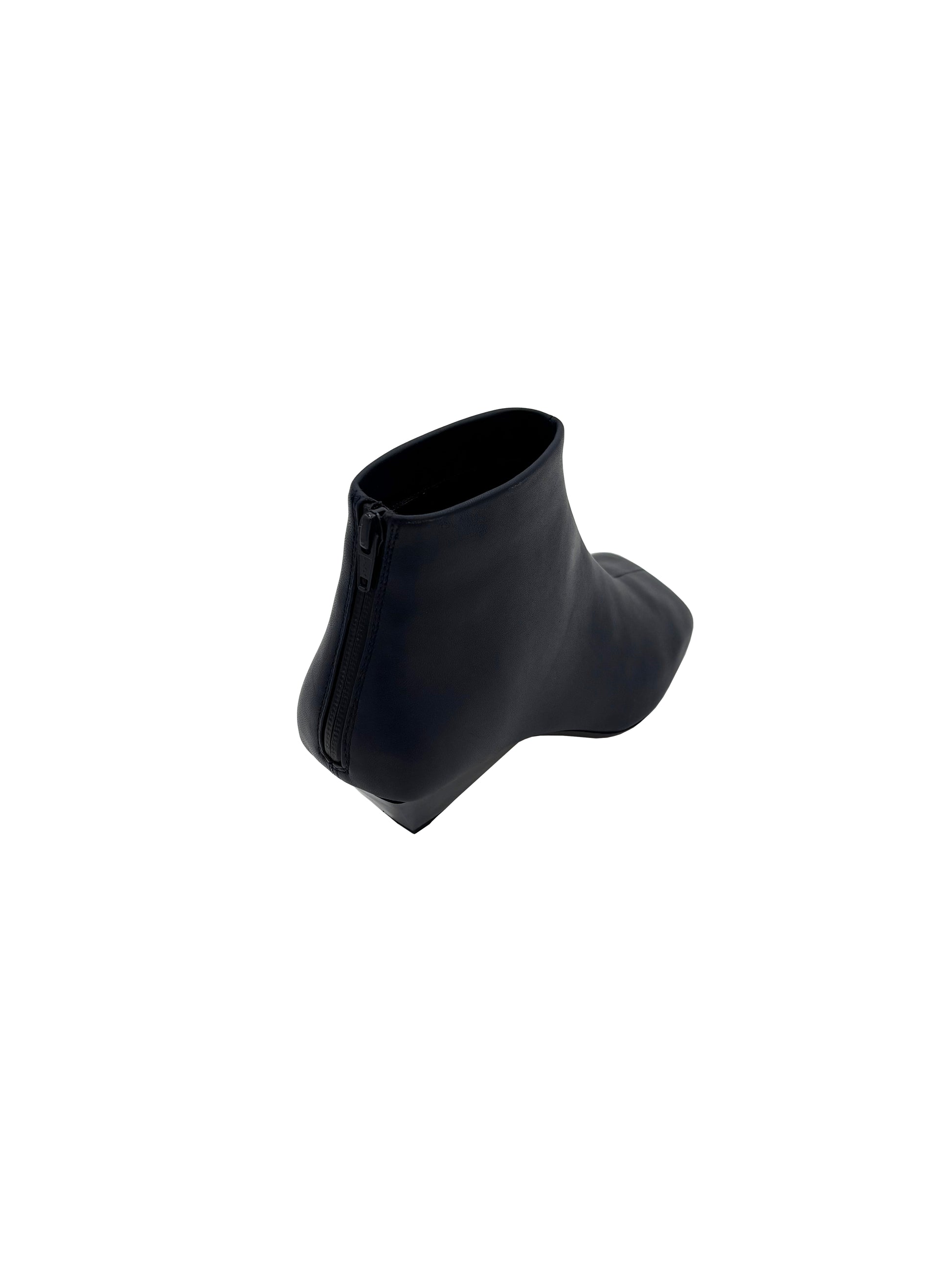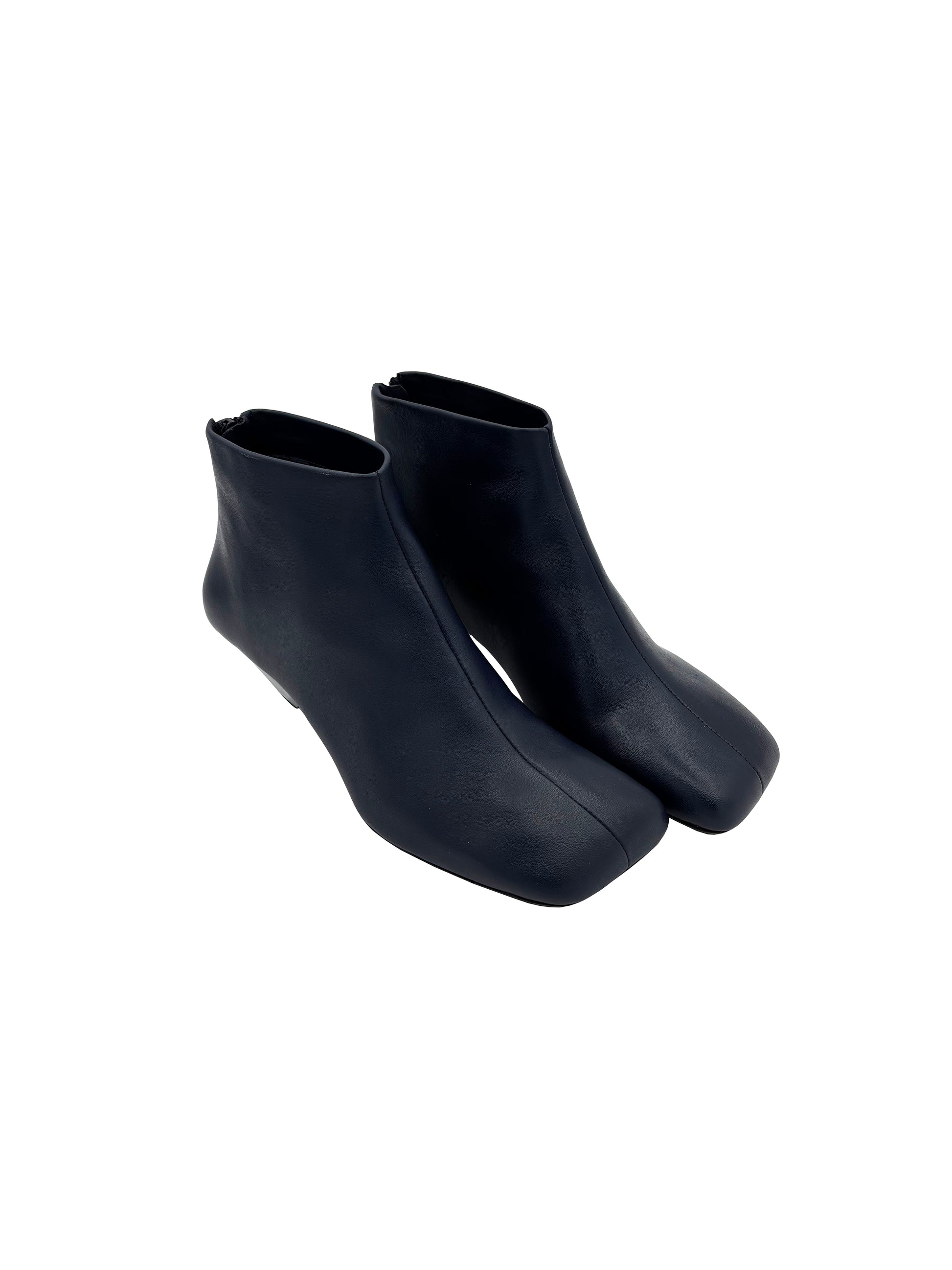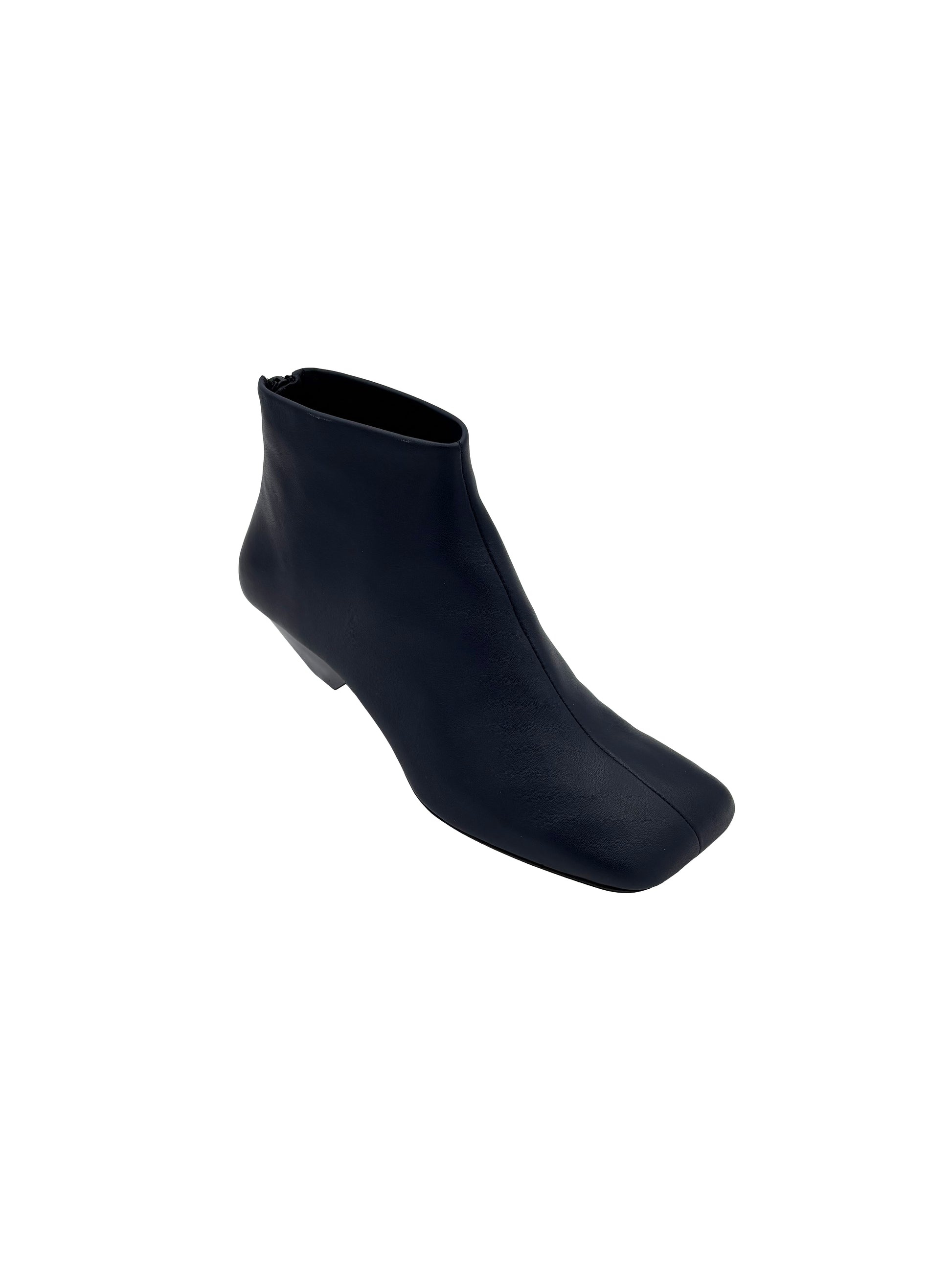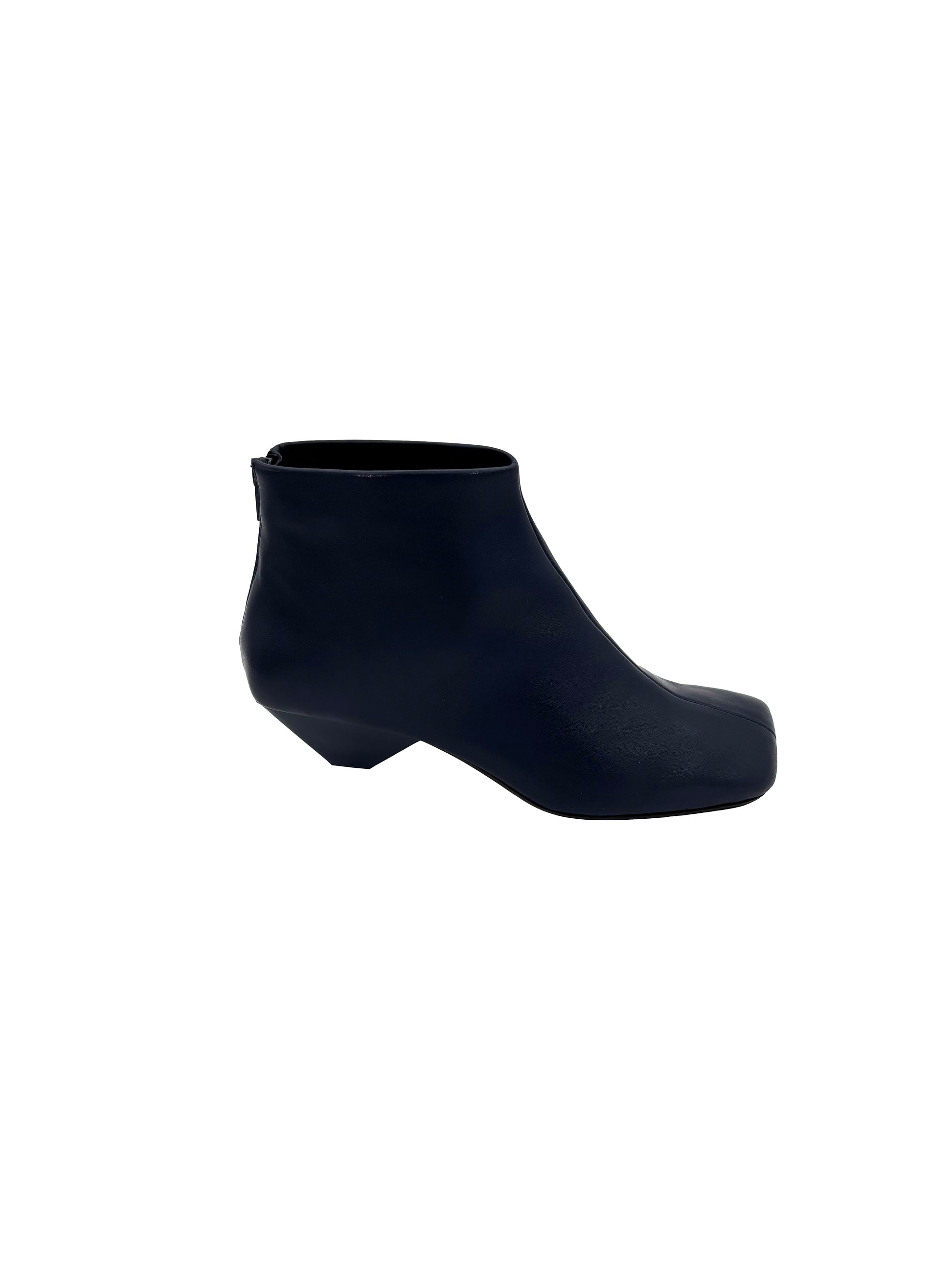 Stivaletto in pelle morbida con tacco trapezoidale e punta quadrata.