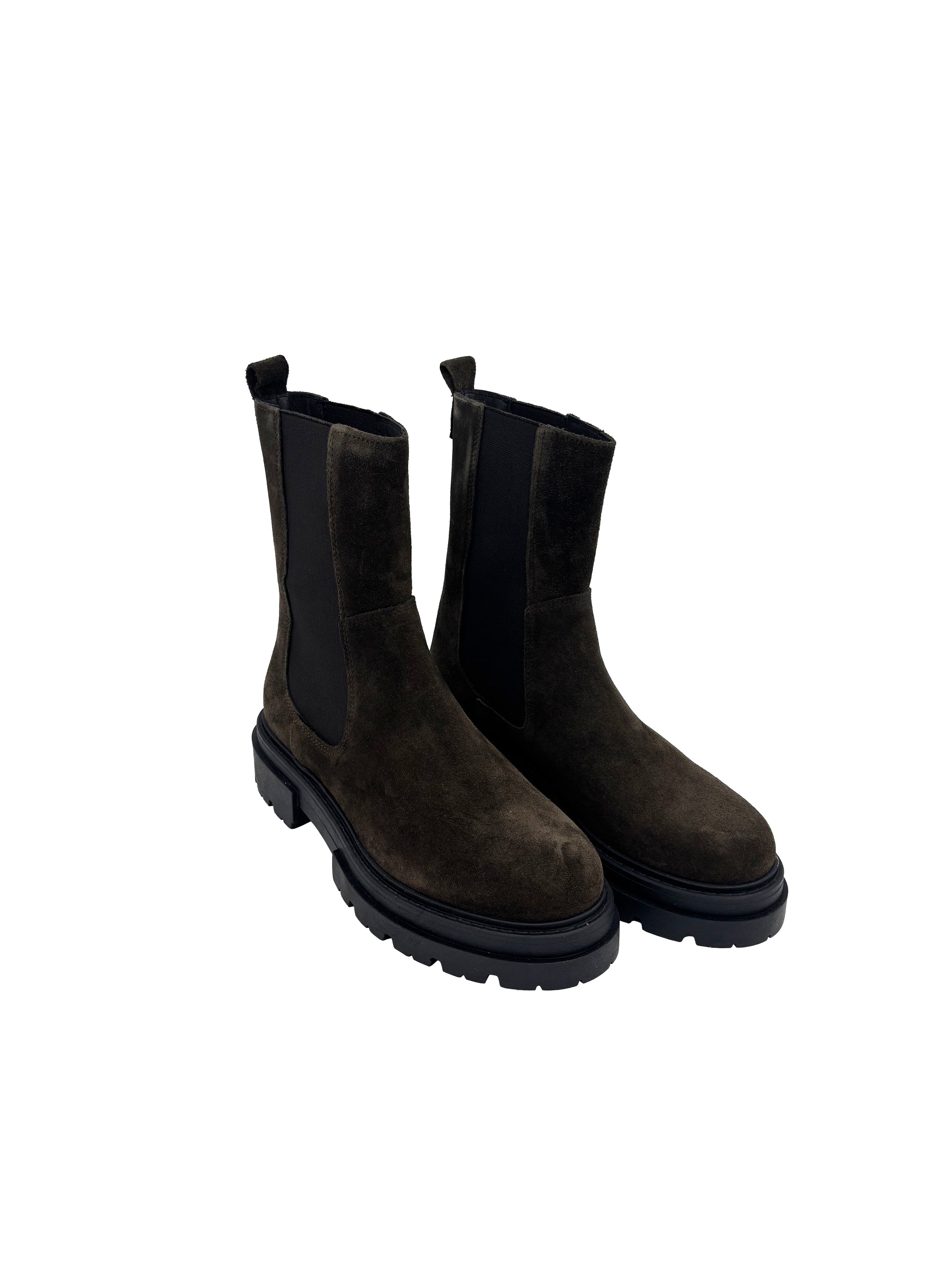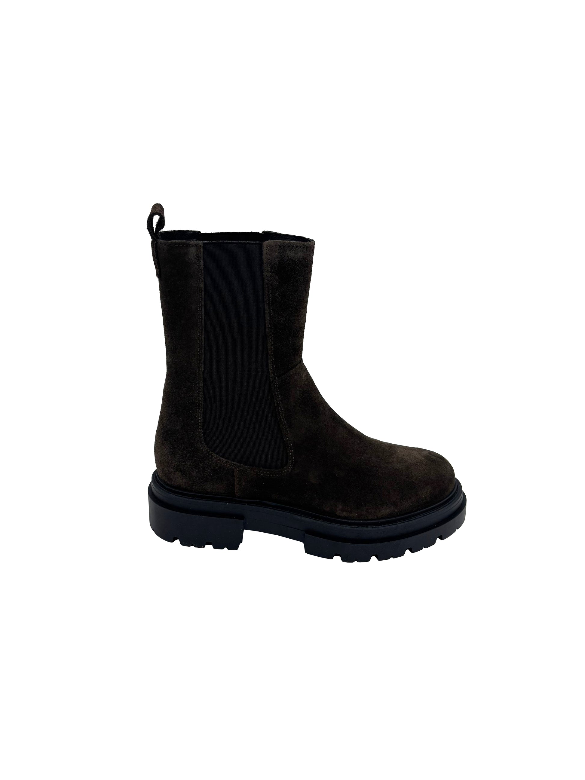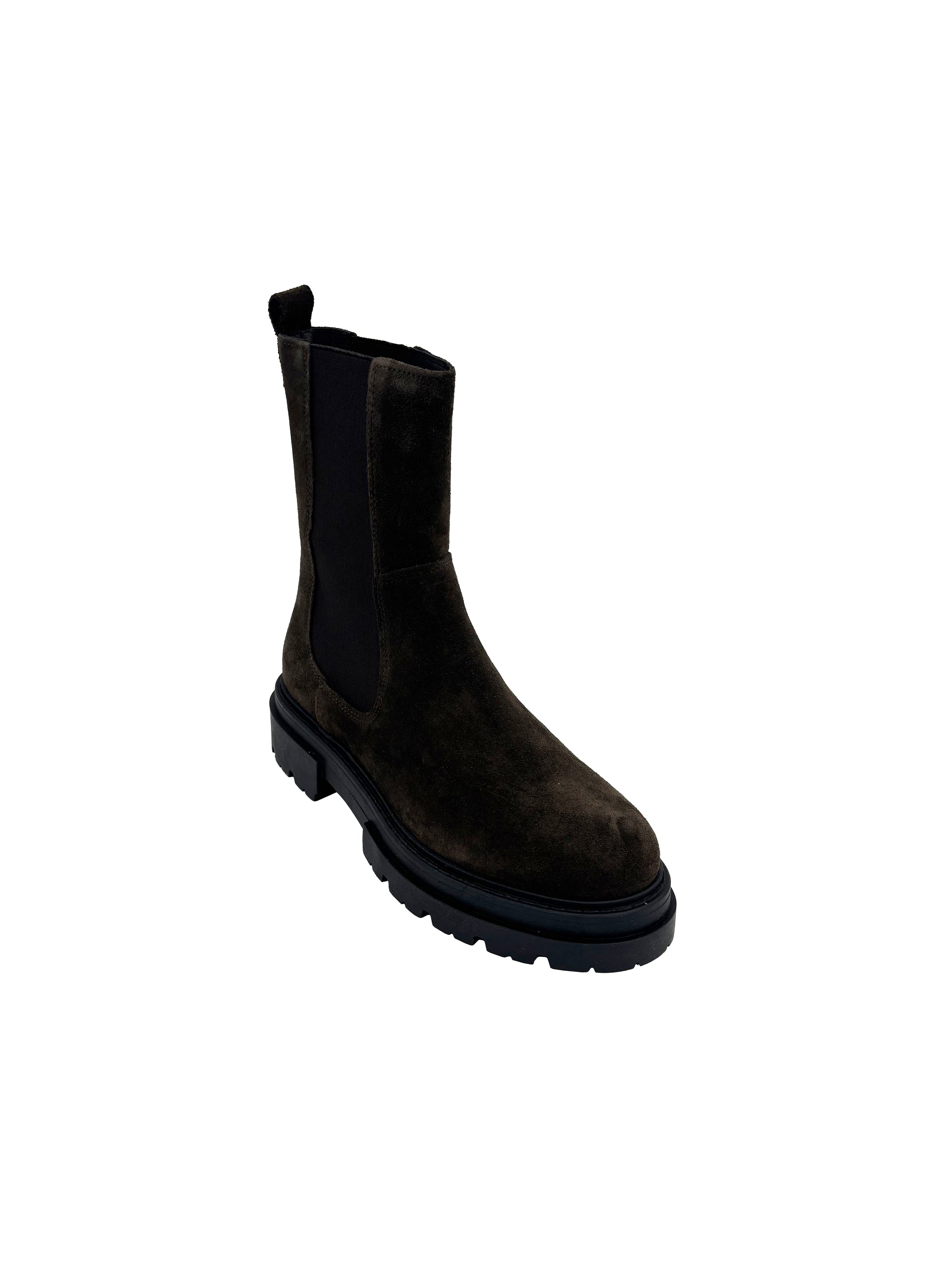 Stivaletto Beatles alto in camoscio con fondo in gomma.