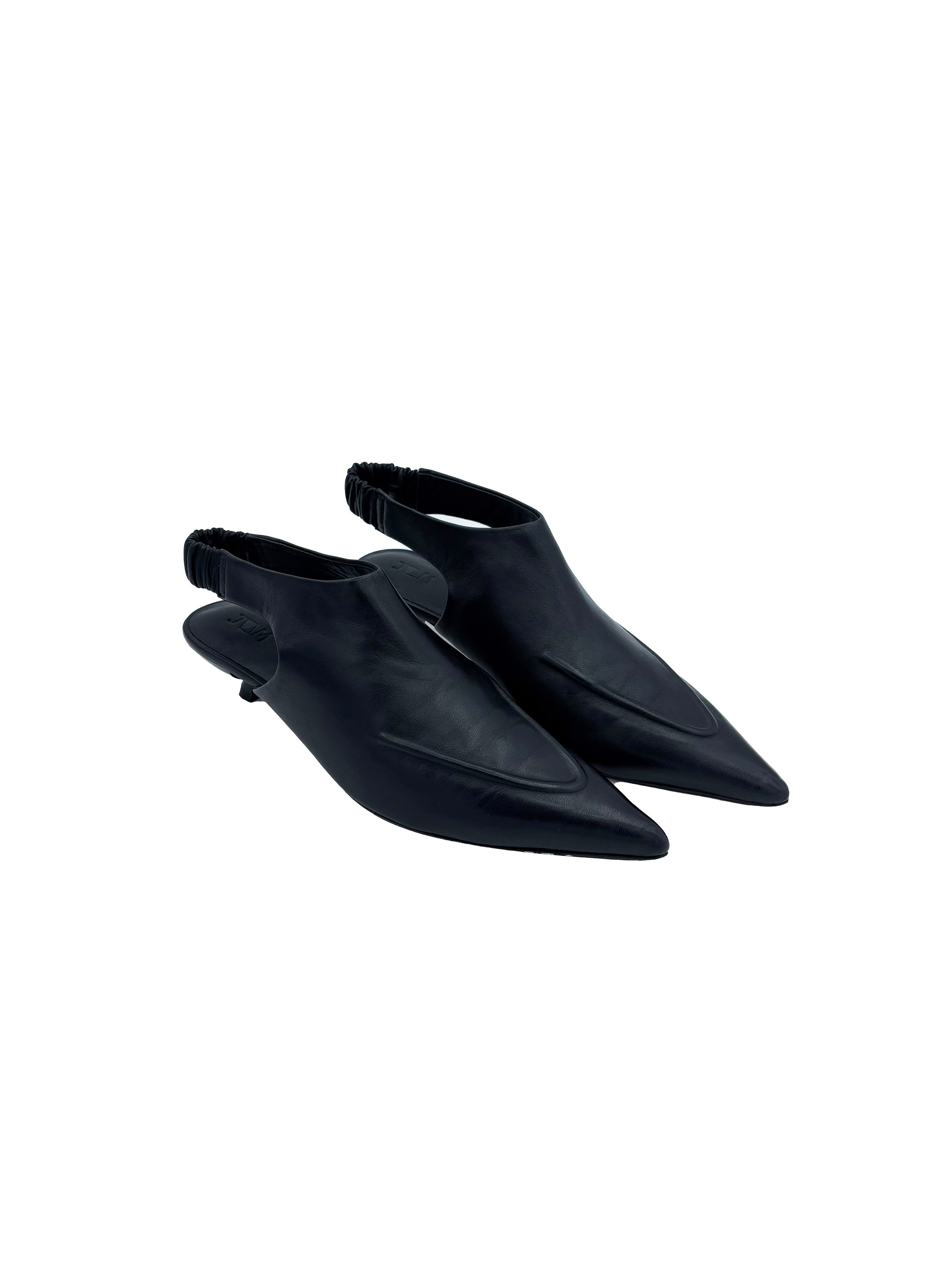 Scarpa slingback in pelle nera con tacco sottile.