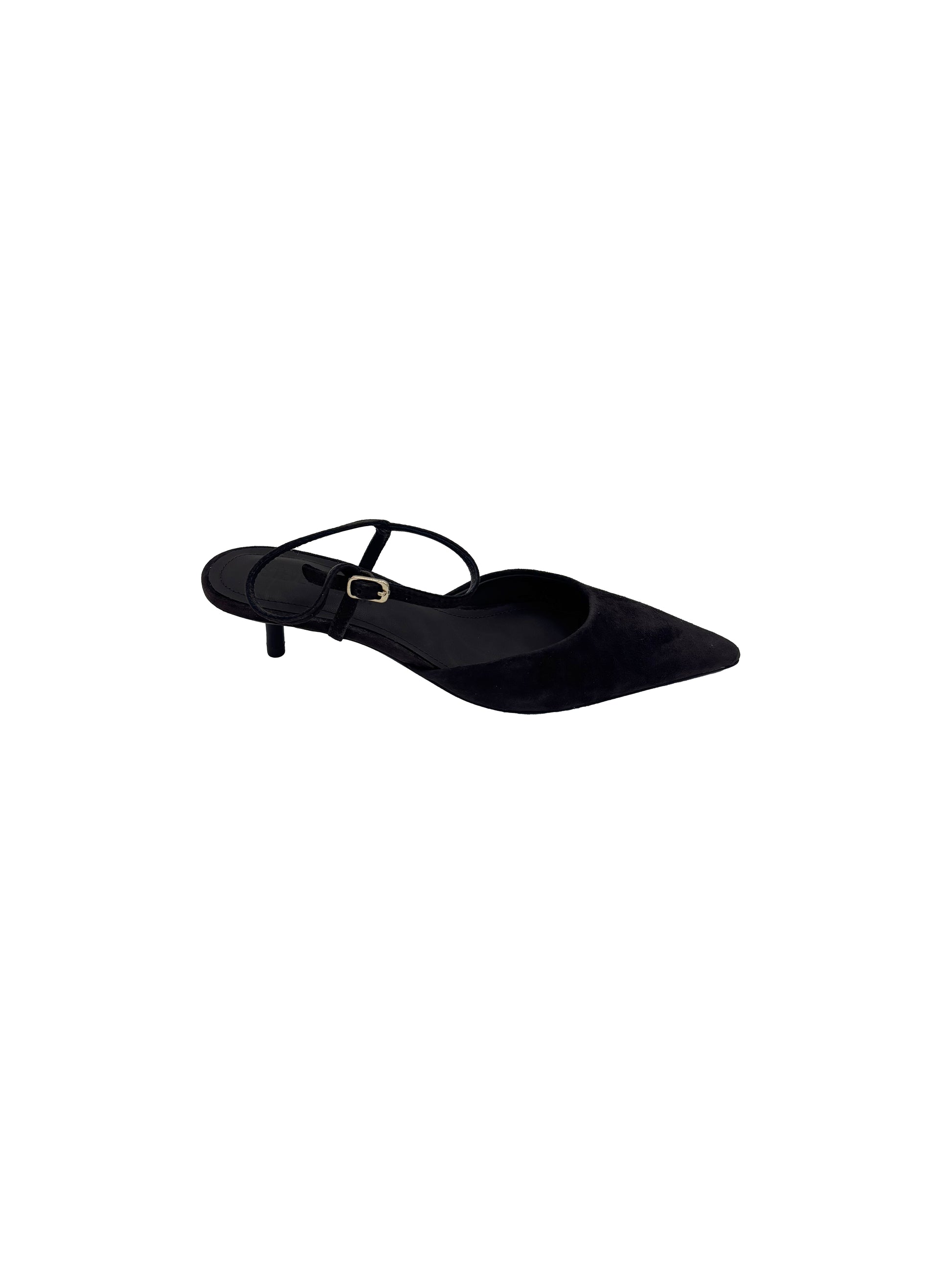 Scarpa chanel in pelle scamosciata con tacco sottile.