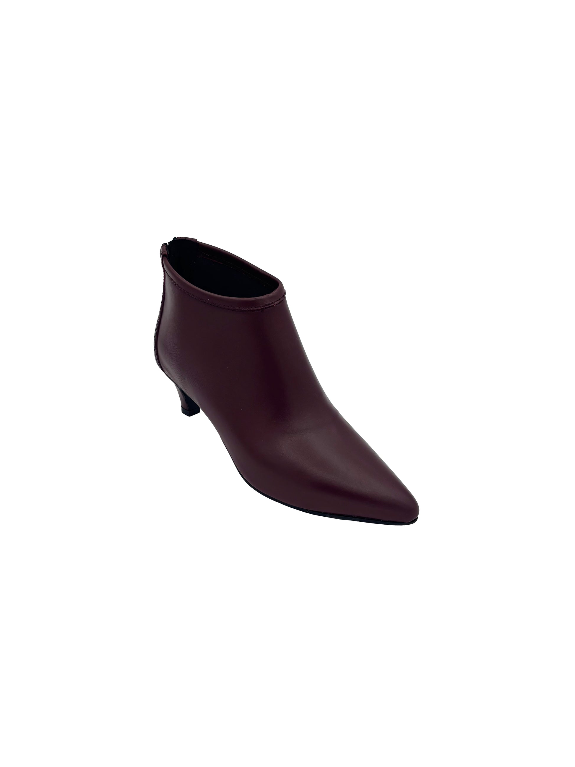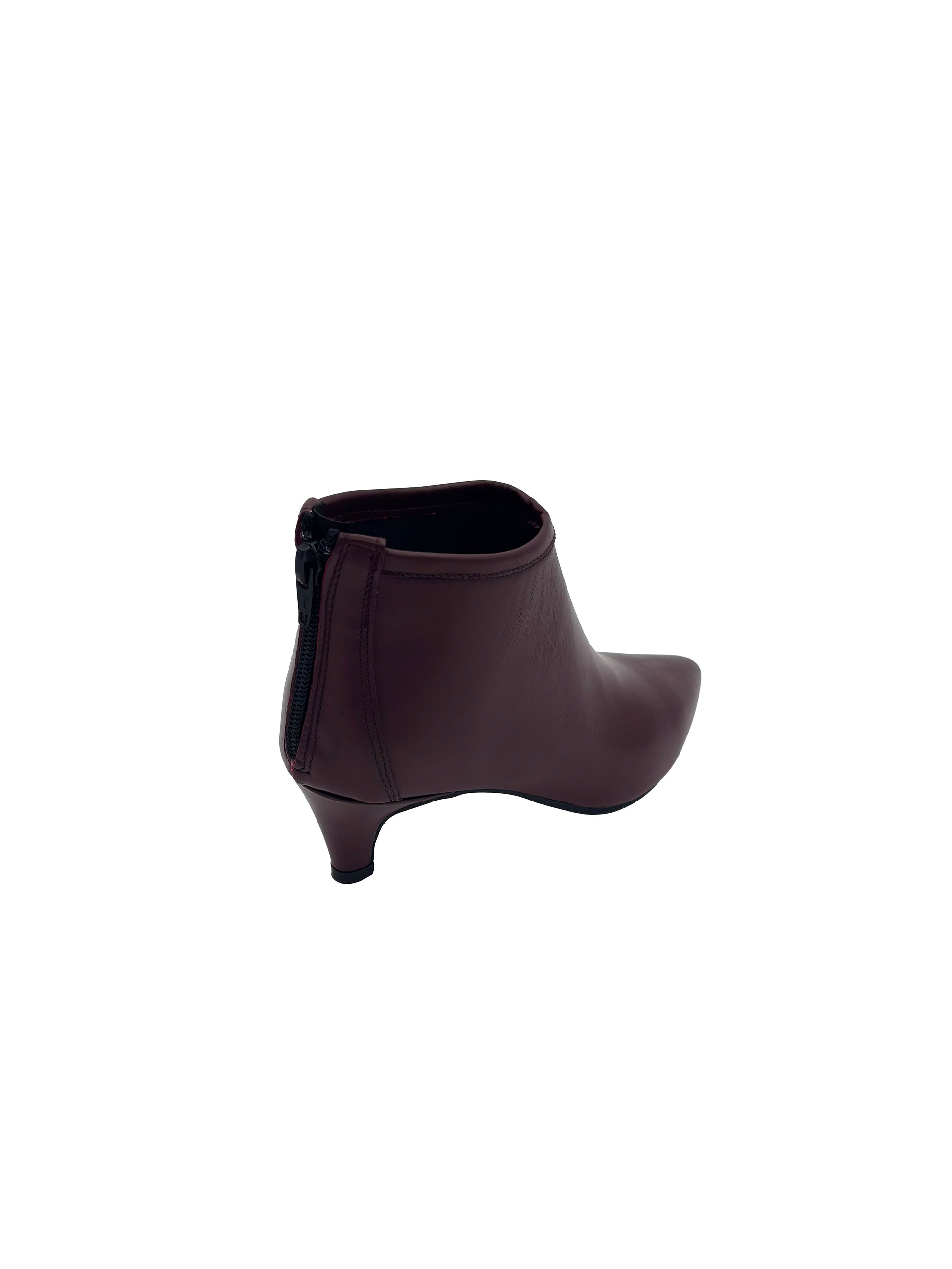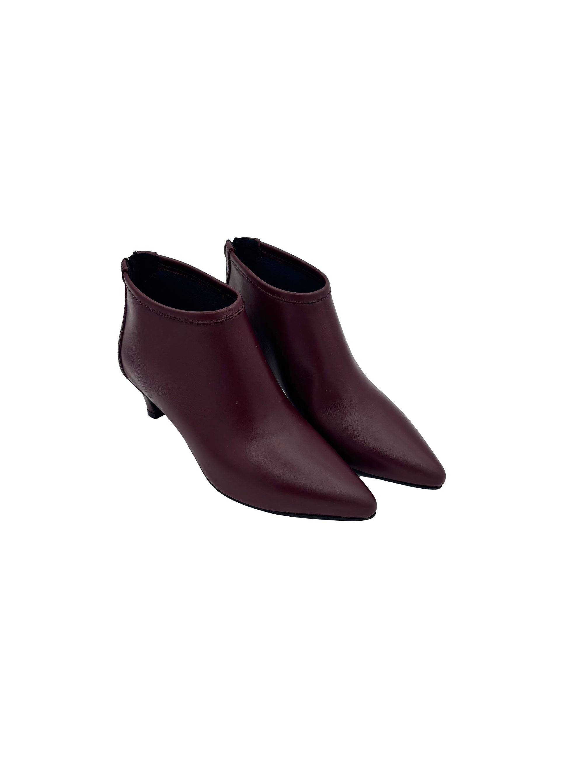 Stivaletto basso in pelle bordeaux con tacco sottile.